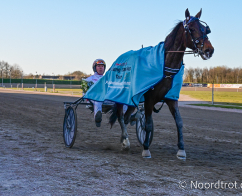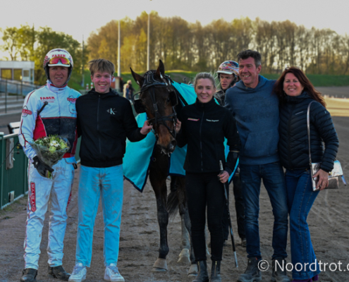 Wolvega, 5 april 2025 Passoa Transs R wint de Prix Hypotheekshop Lemmer (TCT) in 1.14.6 over 2.100 meter met Robin Bakker.