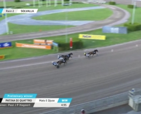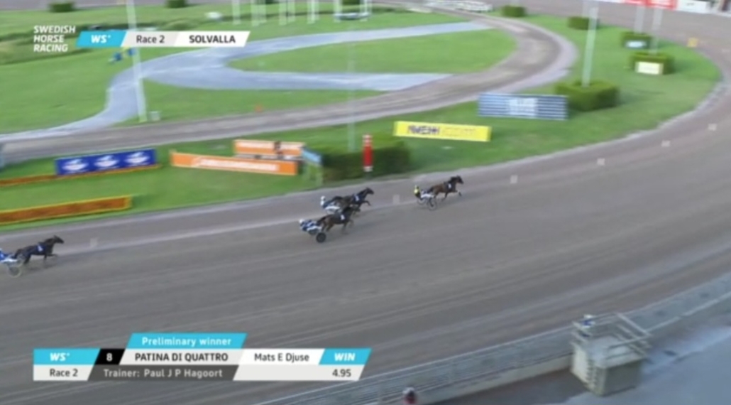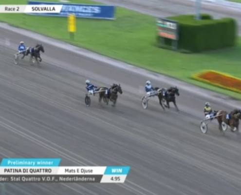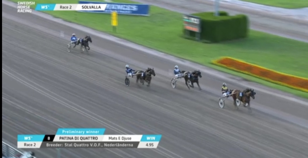 Solvalla, 12 augustus 2025 Patina Di Quattro wint in 1.16.4 over 2.140 meter met Mats E. Djuse.