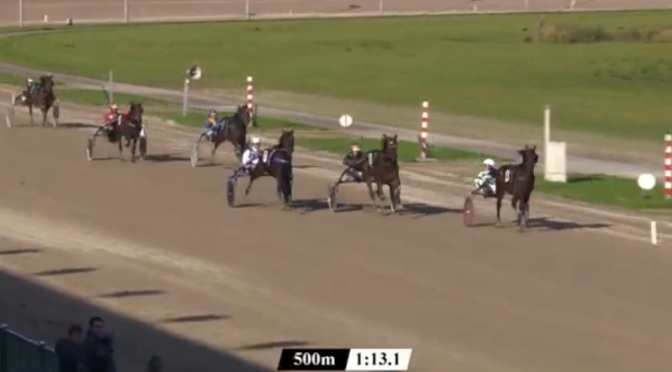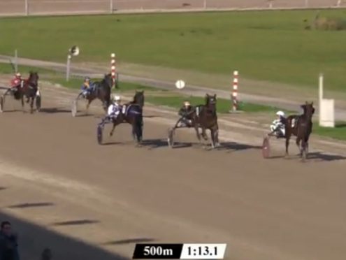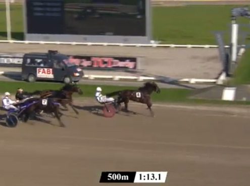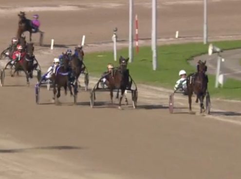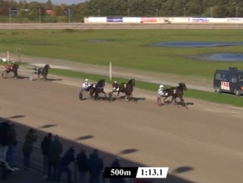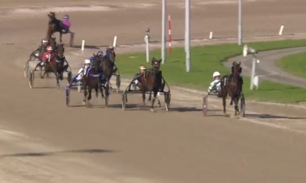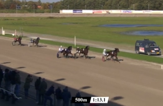 Wolvega, 29 oktober 2021 Pearl Vrijthout wint de Hypotheekshop Lemmer TCT Derby in 1.16.2 over 1.609 meter met Robin Bakker.