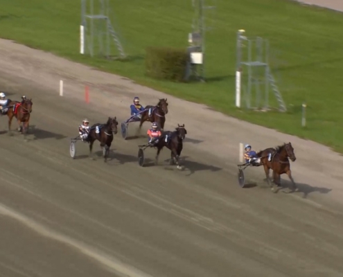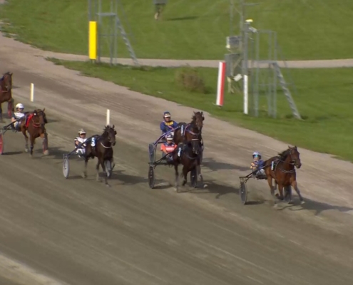Eskilstuna, 14 augustus 2025 Peggy Boko wint de koers voor Driejarigen Merries in 1.12.9 over 2.140 meter met Richard N. Skoglund.