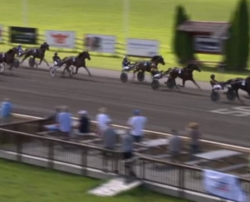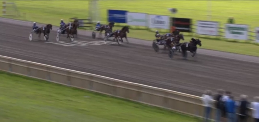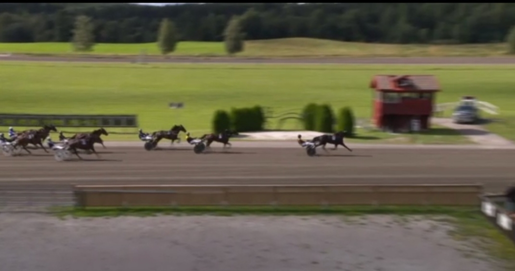 Lindesberg, 16 augustus 2024 Sir Heartbreaker wint de Fördel Ston in 1.15.1 over 2.140 meter met Robin Bakker.