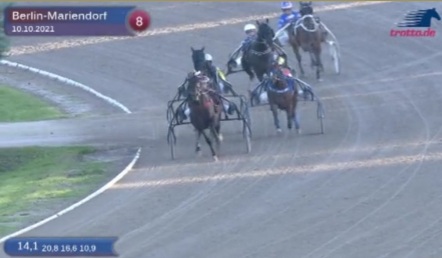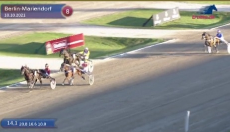 Berlijn, 10 oktober 2021 Usain Lobell wint de Auktionsrennen für Dreijährige (2021) in 1.14.5 over 1.900 meter met André Bakker.