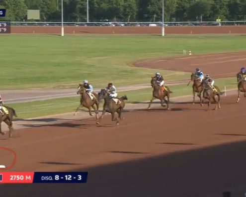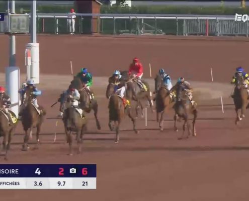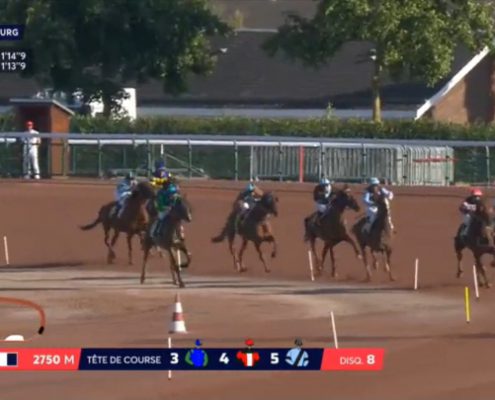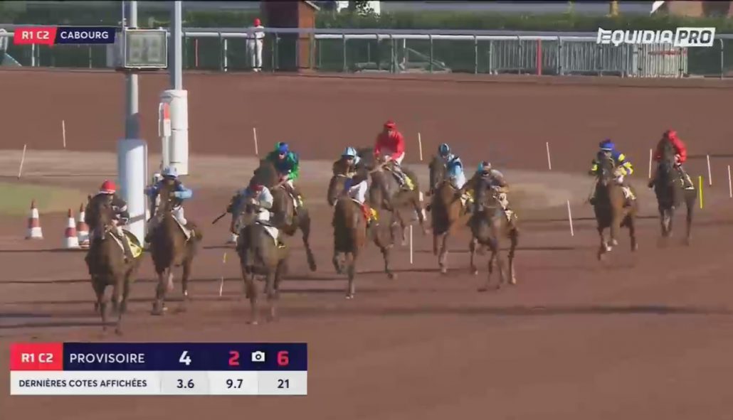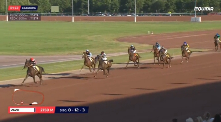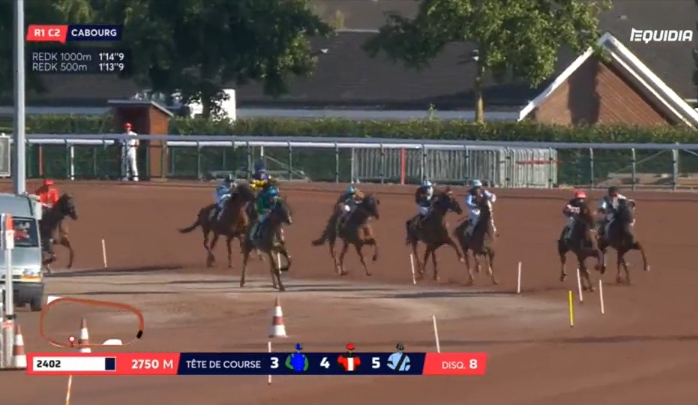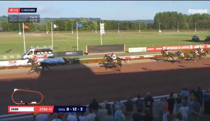 Cabourg, 12 juli 2019 Versus As wint de Foncim Groupe Jean (Prix de Dozule) in 1.14.2 over 2.750 meter met Leo Abrivard.