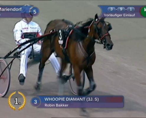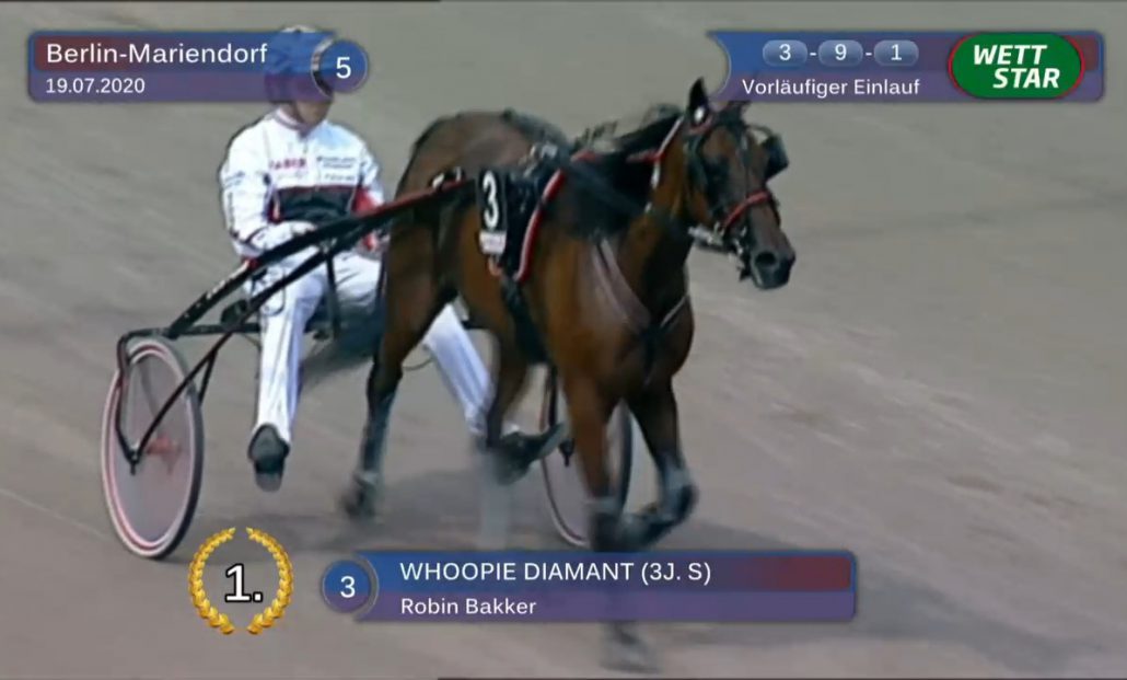 Whoopie Diamant wint de Juliana Werding Rennen in 1.13.9 over 1.900 meter met Robin Bakker.