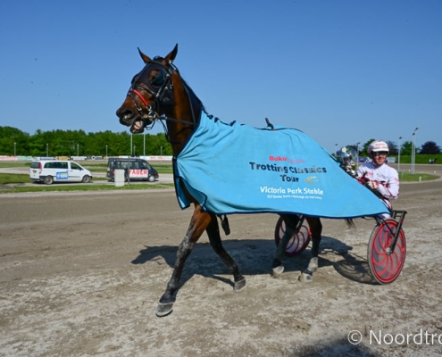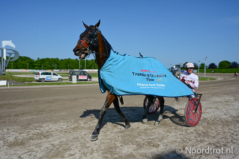 Y Not Diamant wint de Victoria Park Stable TCT Vierjarigen Derby in 1.13.9 over 2.600 meter met Robin Bakker.