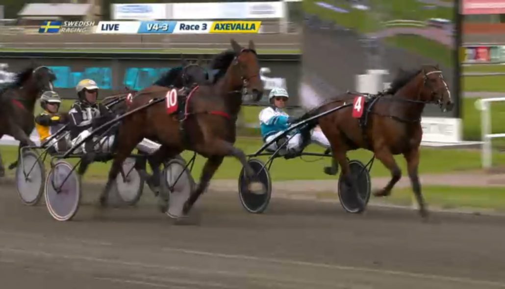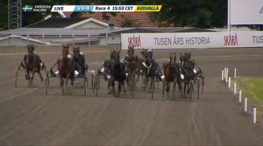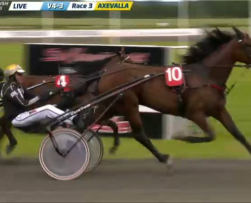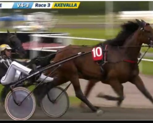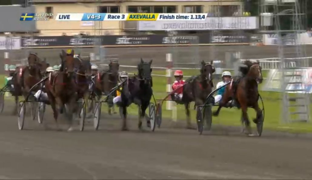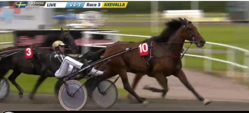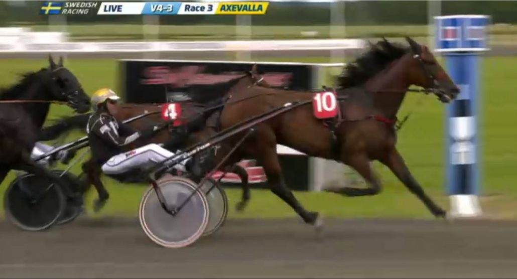 Axevalla, 18 juli 2020 Zante Grif wint de STL Ungdomslopp in 1.13.3 over 2.140 meter met Rick Ebbinge.