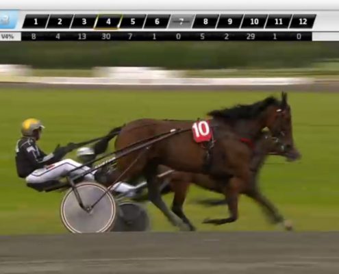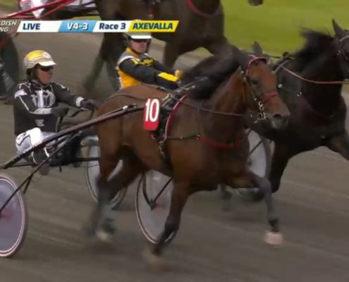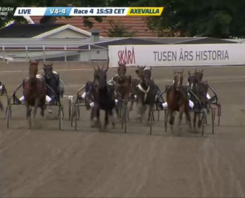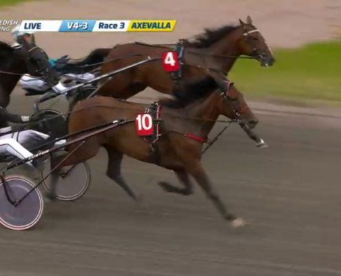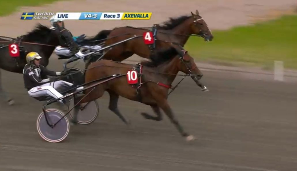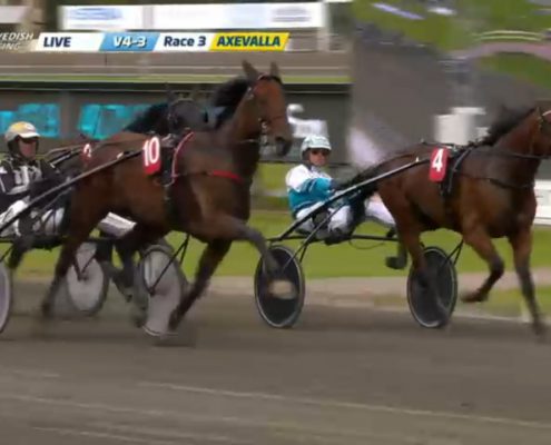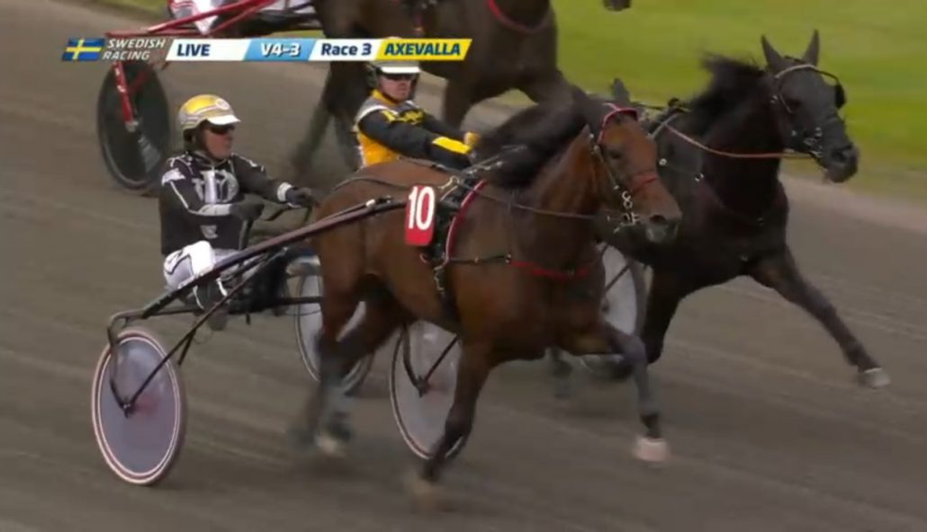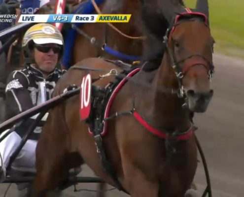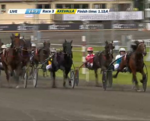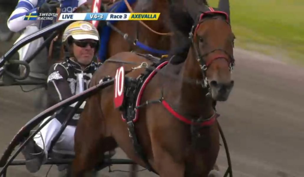 Axevalla, 18 juli 2020 Zante Grif wint de STL Ungdomslopp in 1.13.3 over 2.140 meter met Rick Ebbinge.