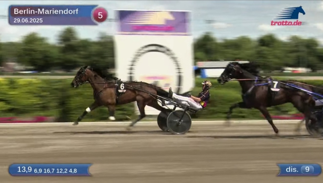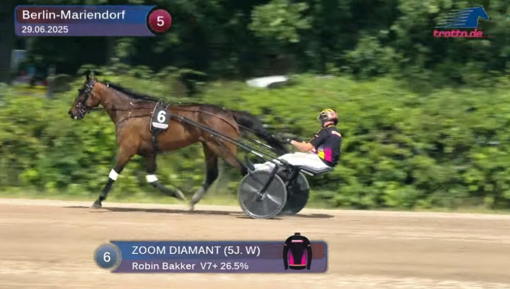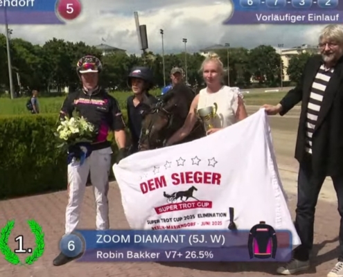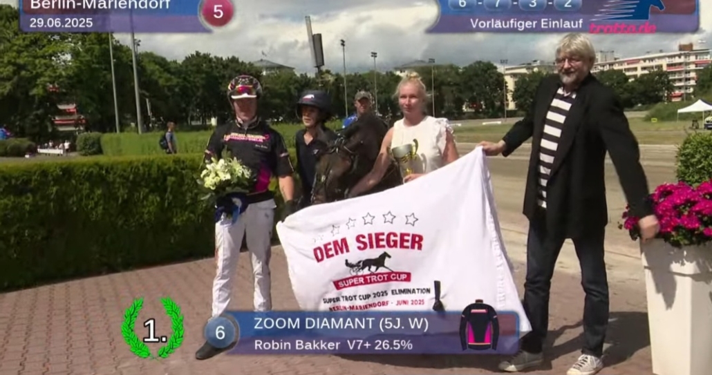 Berlijn, 30 juni 2025 Zoom Diamant wint de Super Trot Cup 2025 in 1.11.3 over 1.900 meter met Robin Bakker.